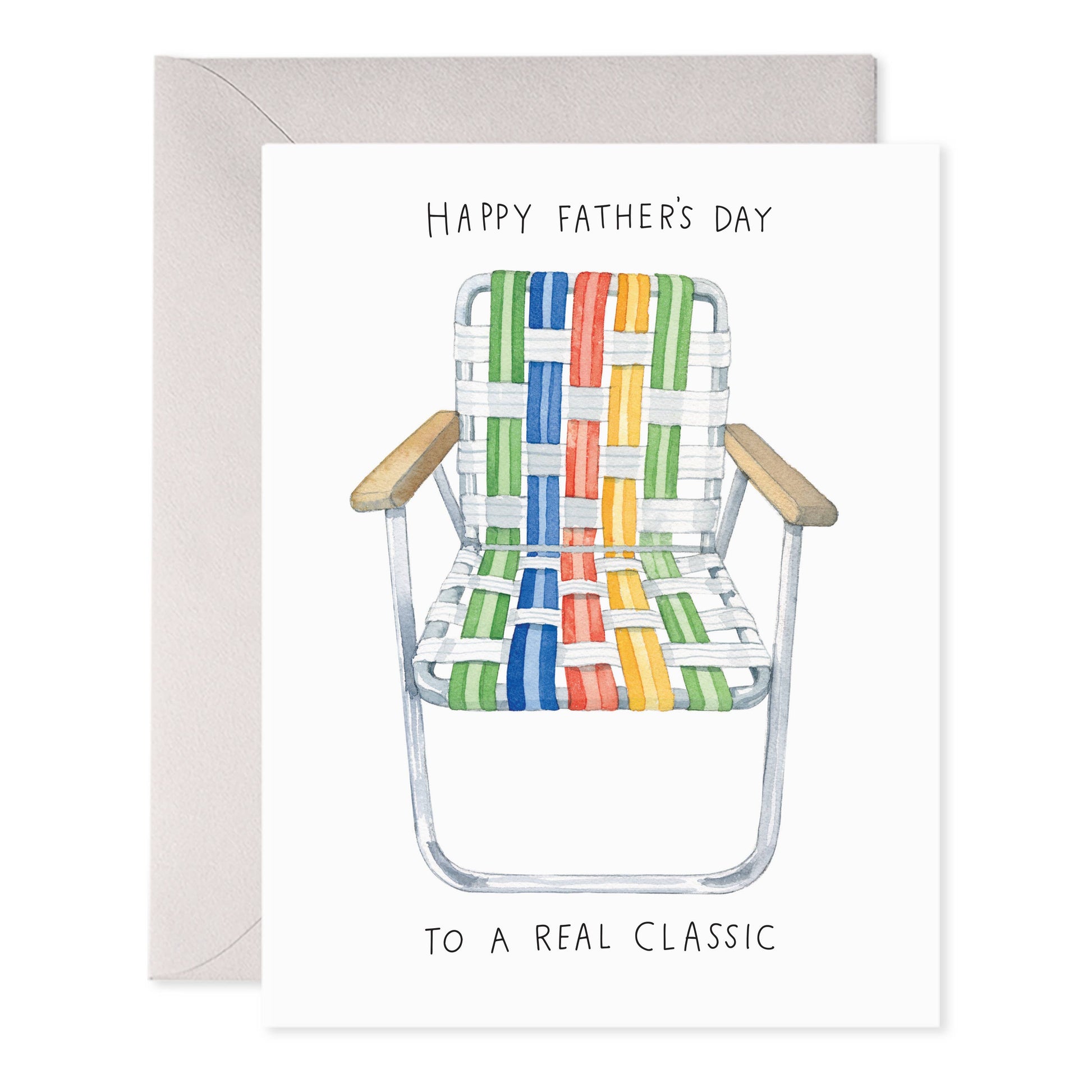 Proudly made in the USA, the Lawn Chair Dad Father’s Day Greeting Card is packaged in eco-friendly, plastic-free materials, making it a sustainable choice for celebrating Father’s Day.
