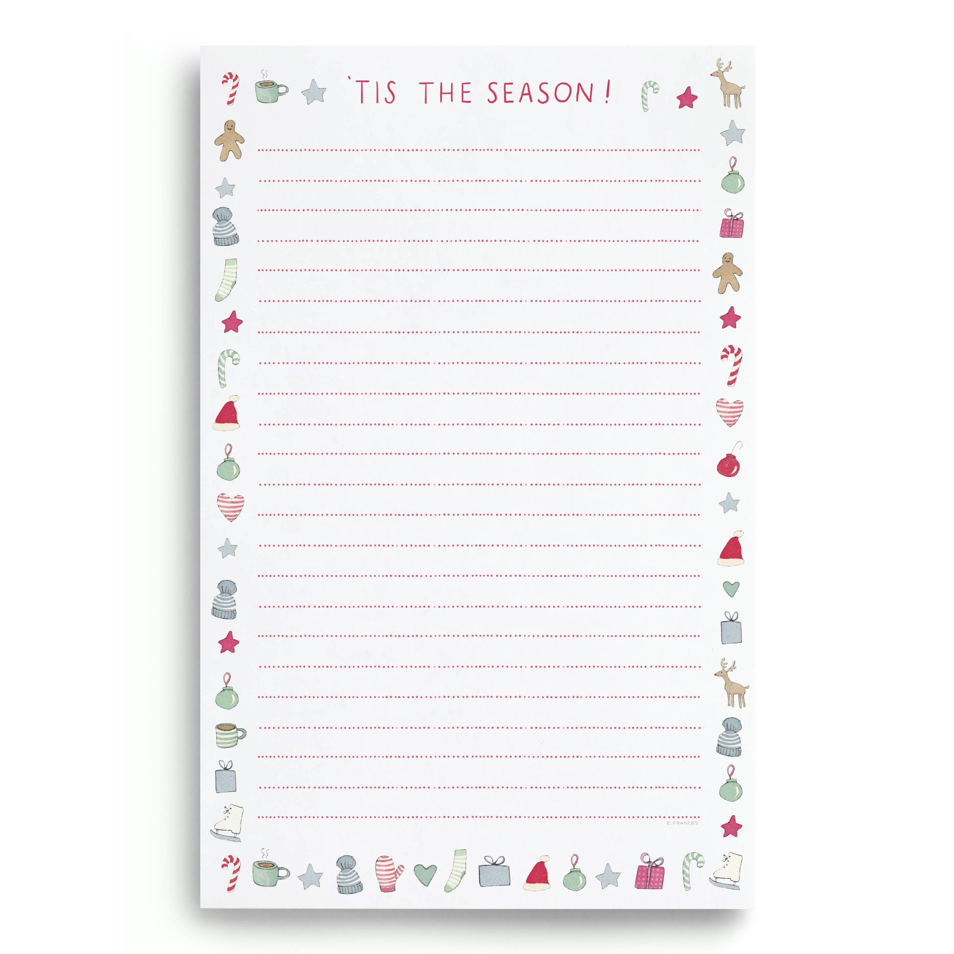 "Tis the Season" lined notepad featuring sweet pastel Christmas and winter-themed designs. Ideal for adding a soft, festive touch to your to do list this holiday season!